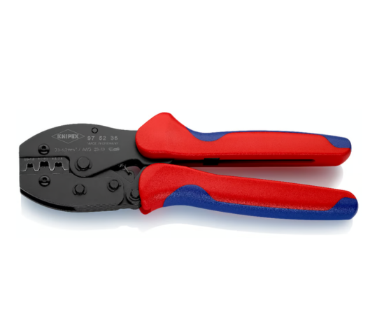 The KNIPEX 97 52 35 PreciForce Crimping Pliers deliver precise, repeatable crimping for non-insulated open plug-type connectors. Designed with factory-calibrated crimping pressure and a ratchet mechanism, this tool ensures consistent quality and reliable performance for professional users.