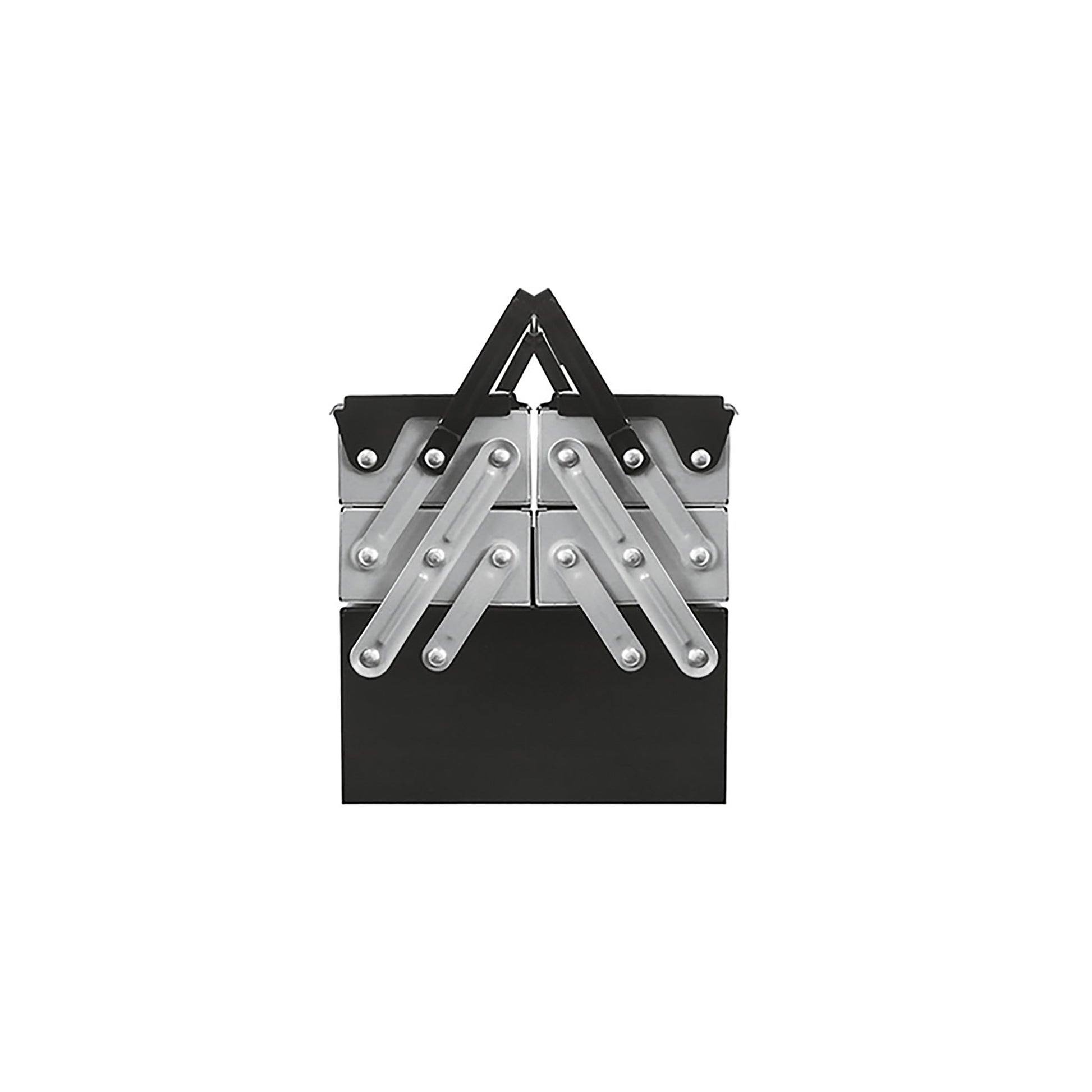 Tool carrying box, empty, 520x200x200 mm. Made of sheet steel. Stable design in grey-black design. The ideal helper in the workshop. With 5 compartments. Tried and tested, traditional construction. Foldable carrying handle. 4 large folding compartments, 1 main compartment